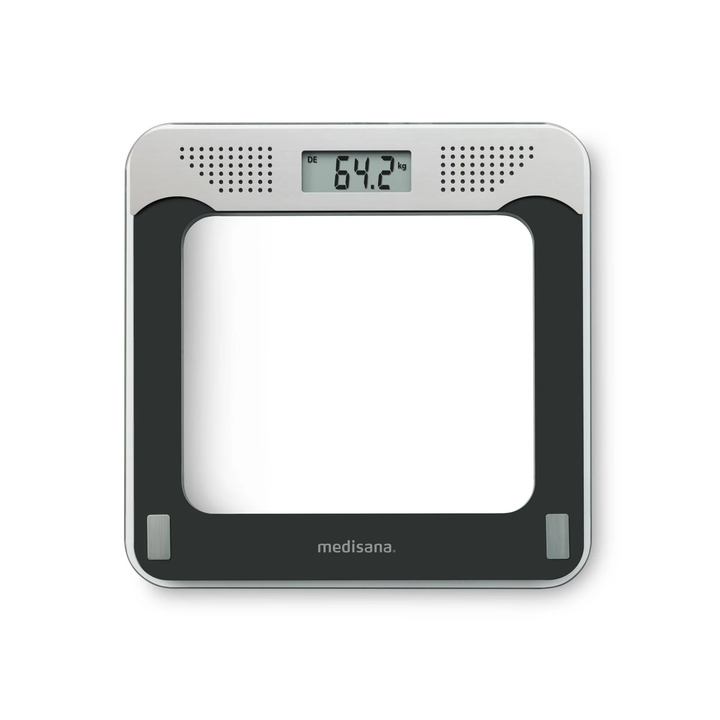 The special feature of the Medisana PS 425 personal scale is that, in addition to the easy-to-read LCD display, it also offers voice output in four languages: German, English, French and Spanish. The talking scale provides loud and clear information about the current body weight and is therefore a great help, especially for the elderly, visually impaired or blind.